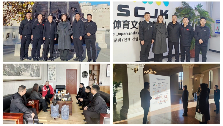 在校友们的协调与陪同下,刘麦霞一行参观考察了中日韩体育文化(烟台)产业园、张裕工业园等知名企业。