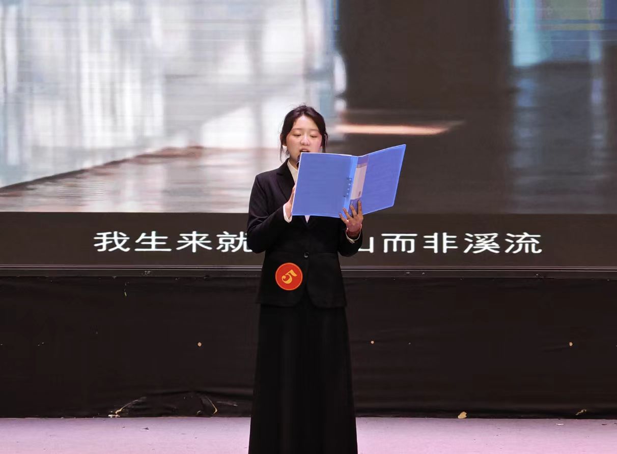 比赛现场,两支团队分别带来《大山里的追光与燃灯》《雷锋,我们的青春坐标》,以默契协调的编排、饱满真挚的情感,将作品内涵与教育家精神展现得淋漓尽致;李佳仪同学诵读的《我们的桂梅妈妈》,以沉稳的舞台风范、流畅的表达与充沛的情感,深情诠释师德力量,赢得评委一致认可与现场观众热烈掌声。